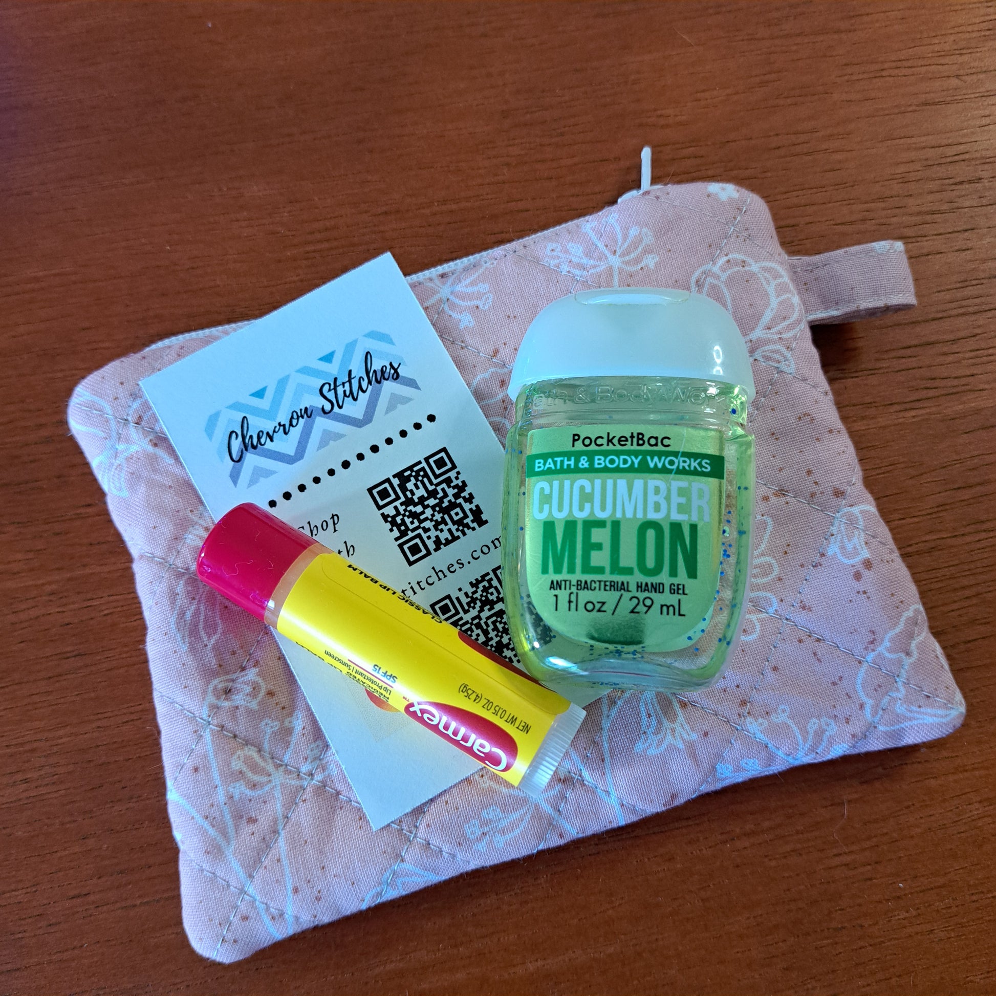 This version showcases a soft pink background with delicate white floral outlines, complemented by a clean white interior and matching white zipper. Featuring a quilted exterior and fully lined interior, it’s built for everyday durability. The attached clasp allows you to easily secure it to your keys, bag, or belt loop—ideal for hands-free convenience when traveling light.